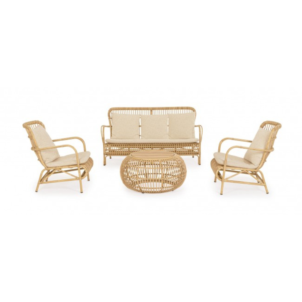 АЛЮМІНІЄВА РАМА ПОРОШКОВО ПОКРОВАНА (ПОЛІЕСТЕР) З ЕФЕКТОМ РОТАНГА, ПЛЕТІННЯ З СИНТЕТИЧНОГО ВОЛОКНА (КРУГЛИЙ 10ММ). ПОДУШКИ ЗІ ЗНІМНИМ ЧОХЛОМ З ВОДООТШЛІКУВАЛЬНОГО СОНЦЕСТОЙНОГО ОЛЕФИНОВАЯ ТКАНИНА (100% ПОЛІПРОПІЛЕН). УПАКОВКА БЕЗ КАРТОННОЇ КОРОБКИ.