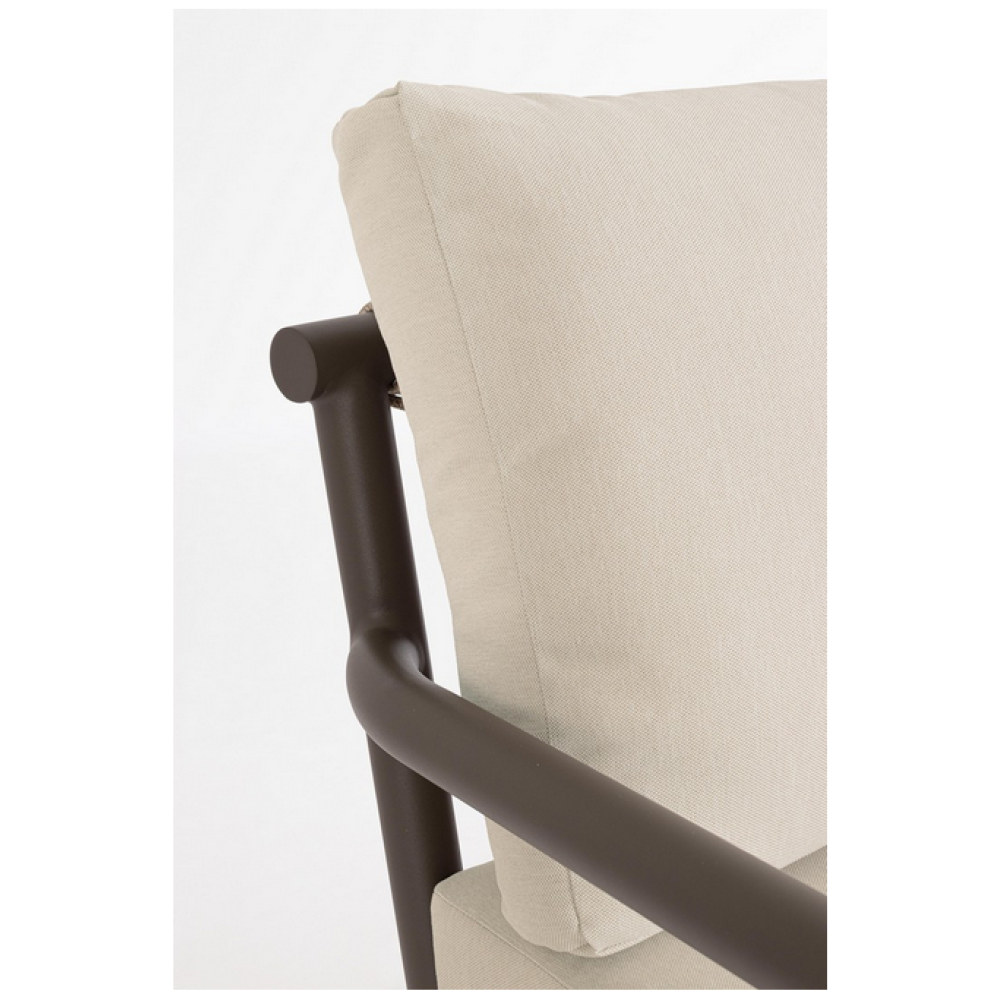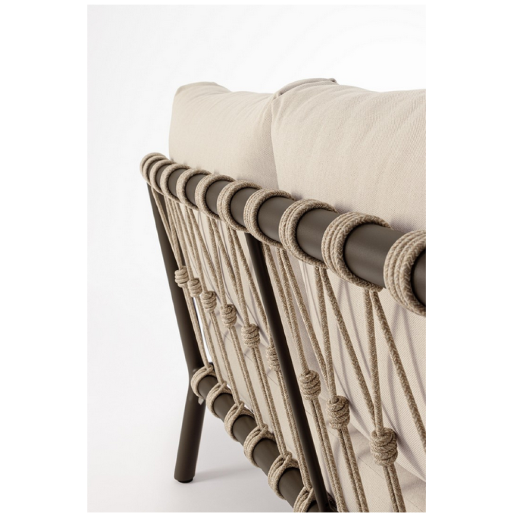 Конструкція з алюмінію з порошковим покриттям (поліестер), пов'язана з поліестерових канатів (водовідштовхувальні, стійкі до УФ-випромінювання). Знімні подушки з водовідштовхувальної олефінової тканини (100% поліпропілен) (205 г/м2). Регульовані ніжки. Журнальний столик потребує збирання.