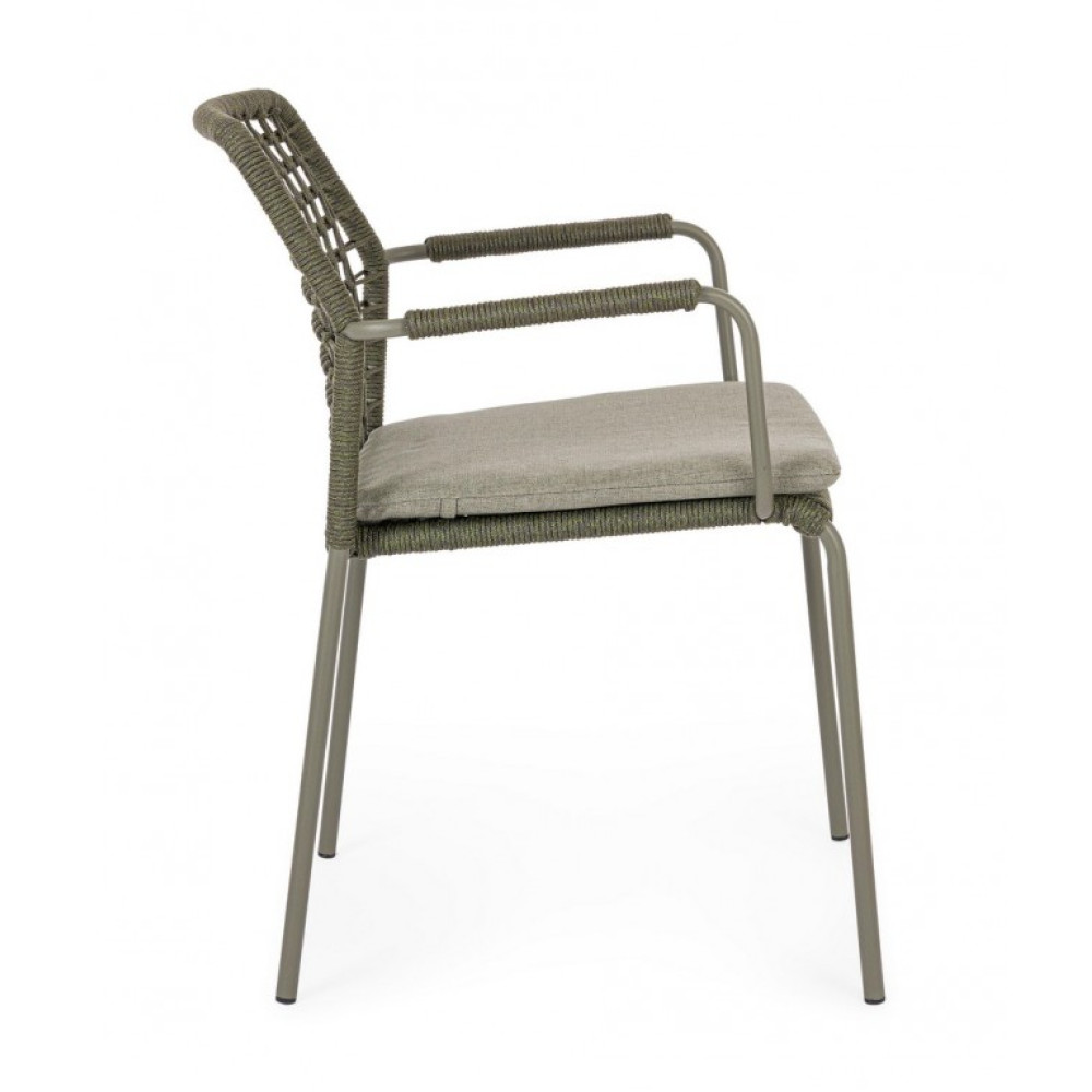 КОНСТРУКЦІЯ З НЕРЖАВІЮЧОЇ СТАЛІ (201). ПЛЕТІННЯ ДЛЯ ЗОВНІШНЬОГО ВИКОРИСТАННЯ В МОТУЗЦІ (ПОЛІПРОПІЛЕНІ). ЗНІМНІ ПОДУШКИ З ВОДООТШЛІКУВАЛЬНОЇ СОНЦЕСТРОЙНОЇ ОЛЕФІНОВОЇ ТКАНИНИ (100% ПІПРОПІЛЕНУ). ШТАБЕЛЬНІ.