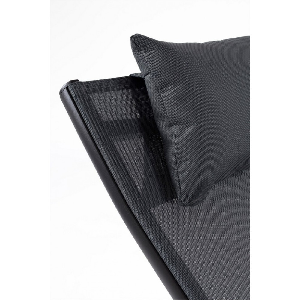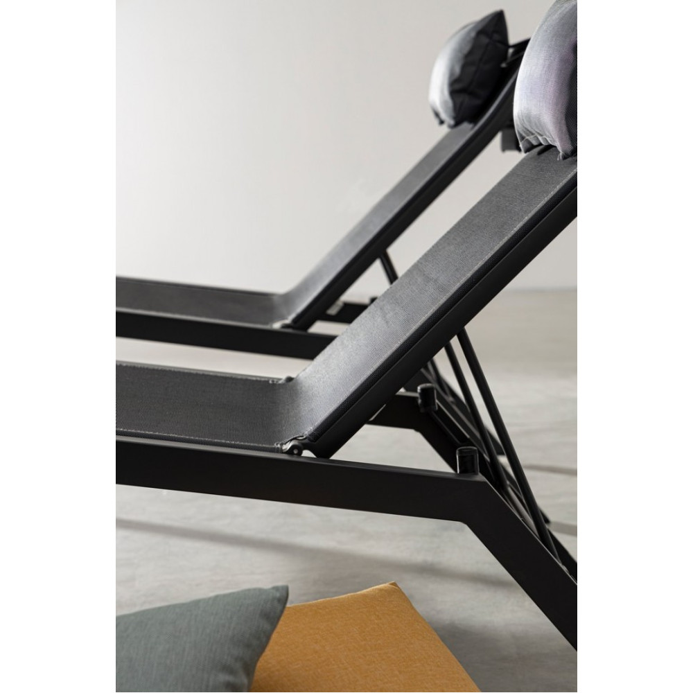 АЛЮМІНІЄВА РАМА, ПОРОШКОВА ПОКРИТА (ПОЛІЕСТЕР). ТЕКСТИЛЬ 1X1. СПИНКА В ТРИ ПОЗИЦІЇ НАХИЛУ. ЗНІМНА ПОДУШКА ПІДГОЛІВНИКА ЗІ ЗНІМНИМ ЧОХЛОМ ТА НАПОВНЕННЯМ ДЛЯ ВИКОРИСТАННЯ НА ВІДМІННОМУ ПОРОЛІ. Гвинти з НЕРЖАВІЮЧОЇ СТАЛІ. ДЛЯ ЗБОРУ.