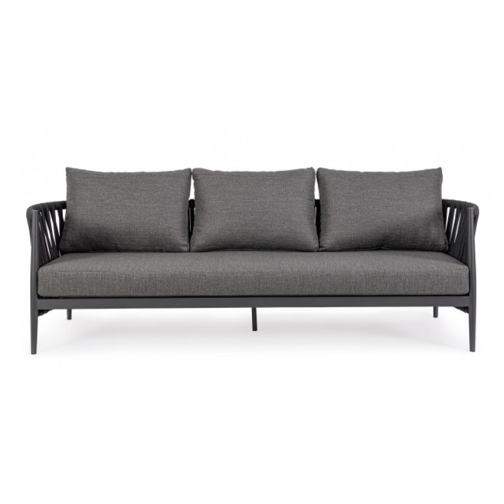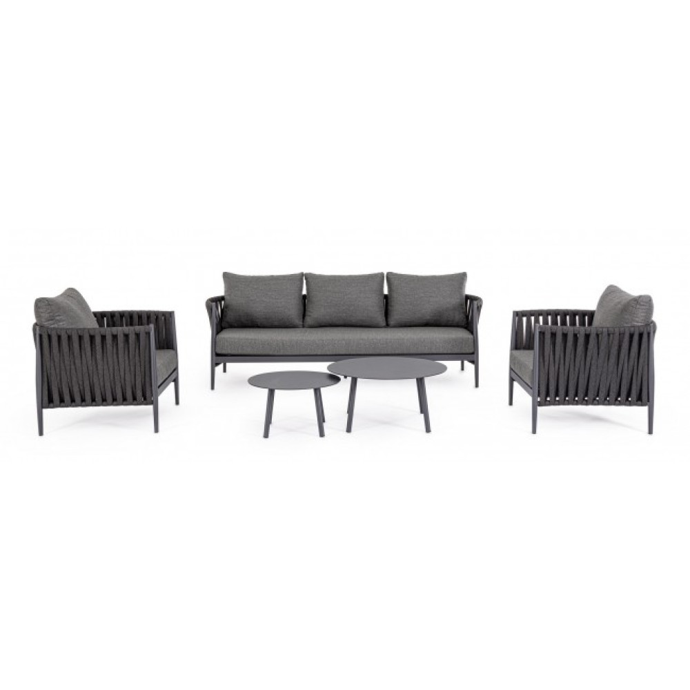 АЛЮМІНІЄВА РАМА, ПОРОШКОВА ПОКРИТА (ПОЛІЕСТЕР). ПЛЕТІННЯ НА МОТУЖЦІ ТЕТОРОН (100% ПОЛІЕСТЕР) З ГУМОВИМ НАПОВНЕННЯМ (ПОЛІЕТИЛЕНОМ). ПОДУШКИ СИДІННЯ ТА СПИНКИ ЗІ ЗНІМНИМ ЧОХЛОМ З ВОДООТШЛІКУВАЛЬНОЇ ОЛЕФІНОВОЇ ТКАНИНИ (100% ПОЛІПРОПІЛЕН).
