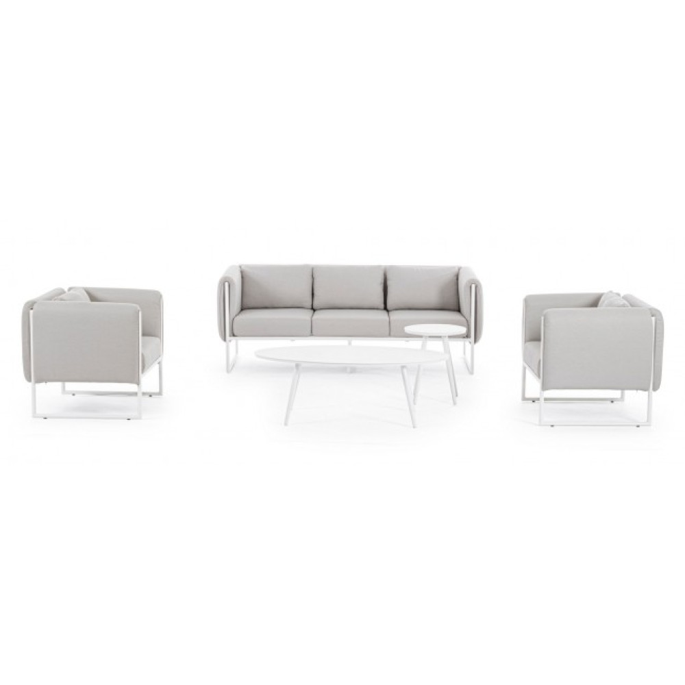 АЛЮМІНІЄВА РАМА ПОРОШКОВО ПОКРИВАНА (ПОЛІЕСТЕР). ЦІЛЕ СИДІННЯ З ВОДОСТІЙКОВИМ НАПОВНЮВАННЯМ, ЧОХАЛ З НЕЗНІМНОЮ ТКАНИНОЮ ДЛЯ ВІДКРИТОСТІ З ОЛЕФІНУ (100% ПОЛІПРОПІЛЕНУ, 285 Г/М2), ВОДООТШЛІКУВАЛЬНИМ ТА СТІЙКИМ до ультрафіолету (7 КЛАС). ПОДУШКИ НА СПИНКУ ЗІ ЗНІМНОЮ ТКАНИНОЮ ДЛЯ ВІДКРИТТЯ З ОЛЕФІНУ.