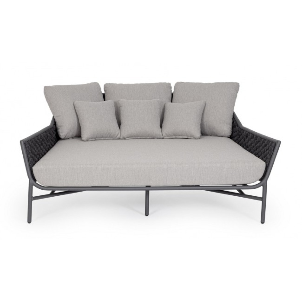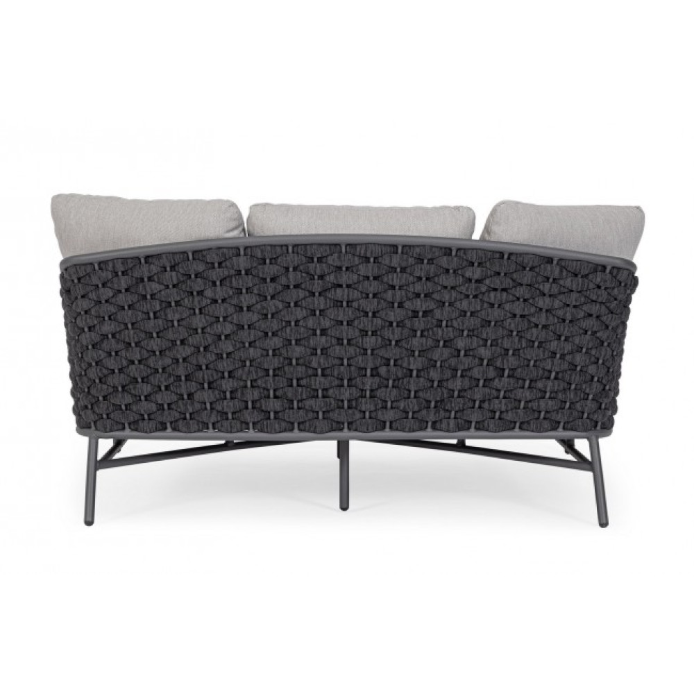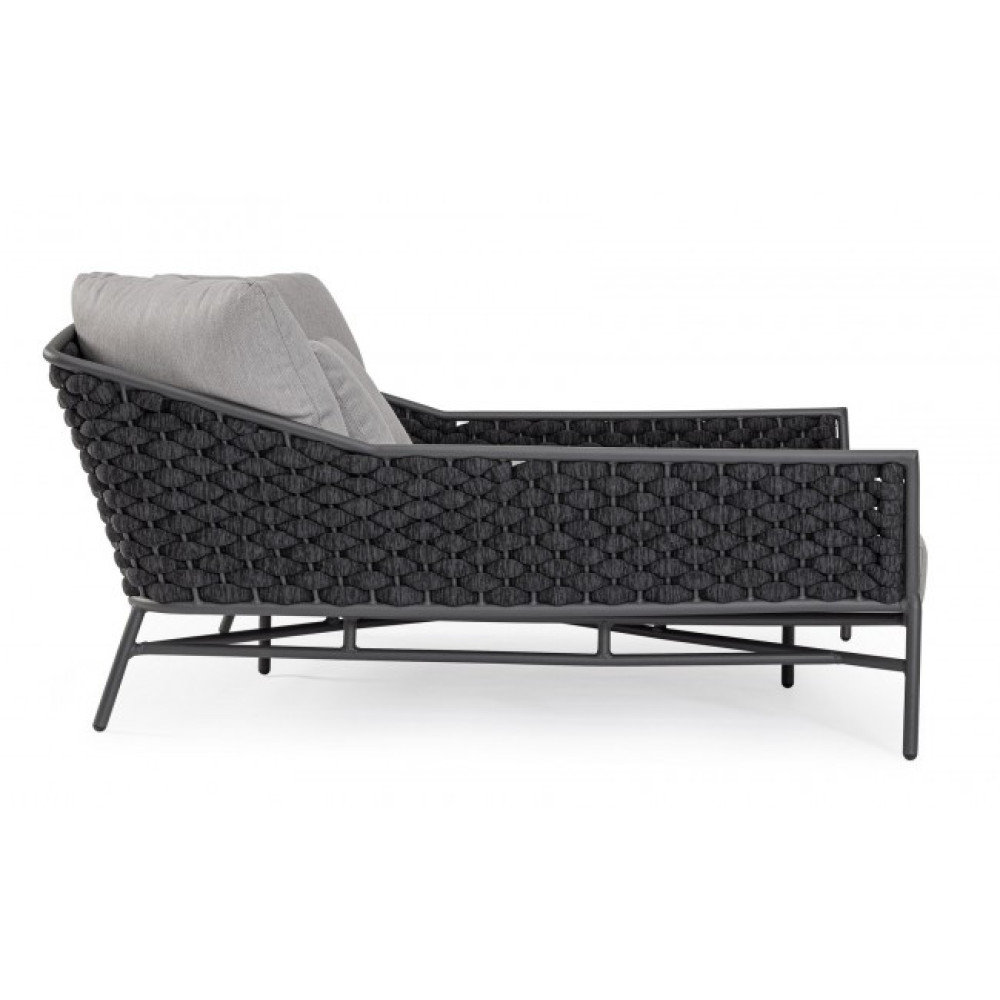 АЛЮМІНІЄВА РАМА ПОРОШКОВО ПОКРИВАНА (ПОЛІЕСТЕР). ТЕКСТИЛЬНЕ МОТУЗКОВЕ ПЛЕТІННЯ З НАПОВНЕННЯМ З НІТРІЛЬНОГО КАУЧУКУ. ПОДУШКА СИДІННЯ ЗІ ЗНІМНИМ ЧОХЛОМ З ВОДООТШЛІКУВАЛЬНОЇ ОЛЕФІНОВОЇ ТКАНИНИ (100% ПОЛІПРОПІЛЕН). .