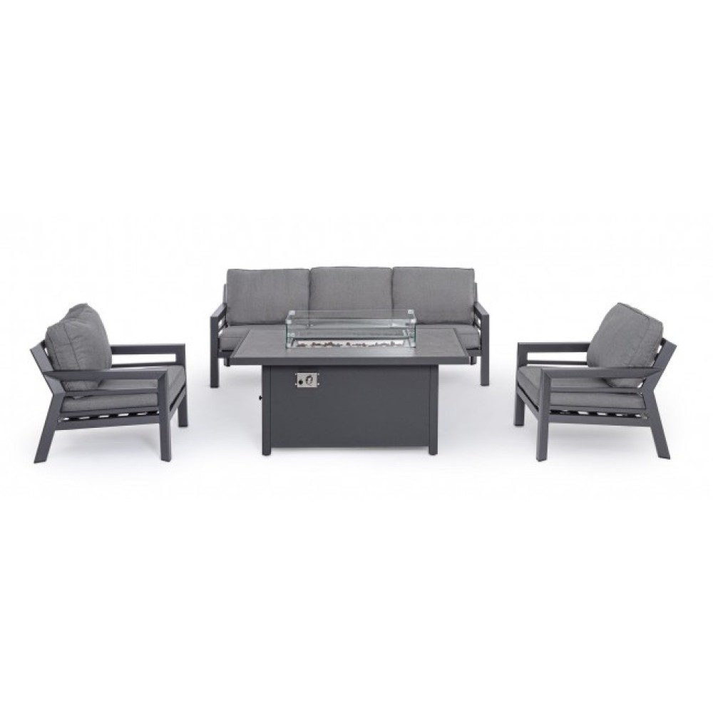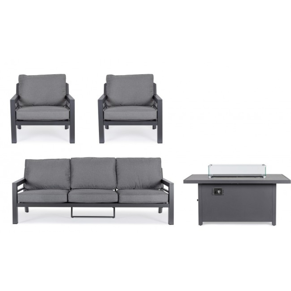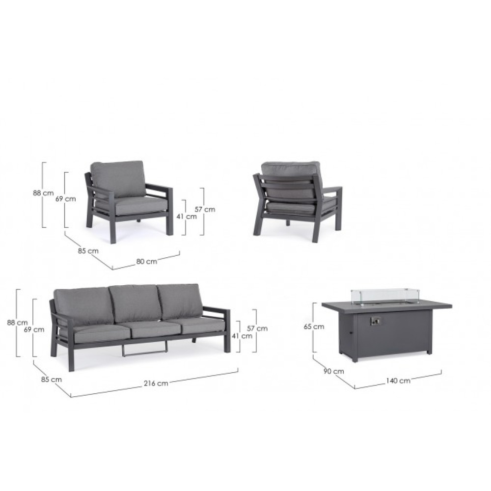АЛЮМІНІЙ ПОРОШКОВО ПОКРОВАНИЙ (ПОЛІЕСТЕР). ПОДУШКИ ЗІ ЗНІМНИМИ ЧОХЛАМИ ЗІ 100% ВОДООТШЛІКУВАЛЬНОГО ПОЛІЕСТУ. АЛЮМІНІЄВИЙ СТІЛ З ПОРОШКОВИМ ПОКРИВАННЯМ (ПОЛІЕСТЕР) ЗІ СКЛЯНОЮ СТІЛЬНІЦЮ (ТОВЩИНА 8 ММ) З ЕФЕКТОМ КЕРАМІКИ ТА ЦЕНТРАЛЬНИМ ГАЗОВИМ КАМІНОМ. КАМІННИЙ ЕКРАН З ЗАГАРТОВАНОГО СКЛА ТА АЛЮМІНІЄВОГО ПОКРИТА. КОНФОРКА З НЕРЖАВІЮЧОЇ СТАЛІ (№304). РУЧКА ЗАПАЛИВАННЯ (МАКСИМАЛЬНА ПОТУЖНІСТЬ 14,7 кВт*год). СКІЛЬНЕ КАМІННЯ ВКЛЮЧЕНО. ГАЗОВИЙ БАЛОН (МІСТЬ ДО 5 КГ, МАКСИМАЛЬНА ВИСОТА 45 СМ), ГУМОВИЙ ШЛАНГ ДЛЯ ГАЗУ, РЕГУЛЯТОР НИЗЬКОГО ТИСКУ ТА АКУМУЛЯТОРНА БАТАРЕЯ (1XAAA) НЕ ВХОДЯТЬ. ВКЛЮЧАЄ ПОКРИТТЯ ДЛЯ СТОЛУ 100% ПОЛІЕСТЕР (180 ГР/М2) З ПОЛІУРЕТАНОВИМ ПОКРИТТЯМ, ВОДООТШЛІКУЮЧИМ ТА УФ-СТІЙКИМ.