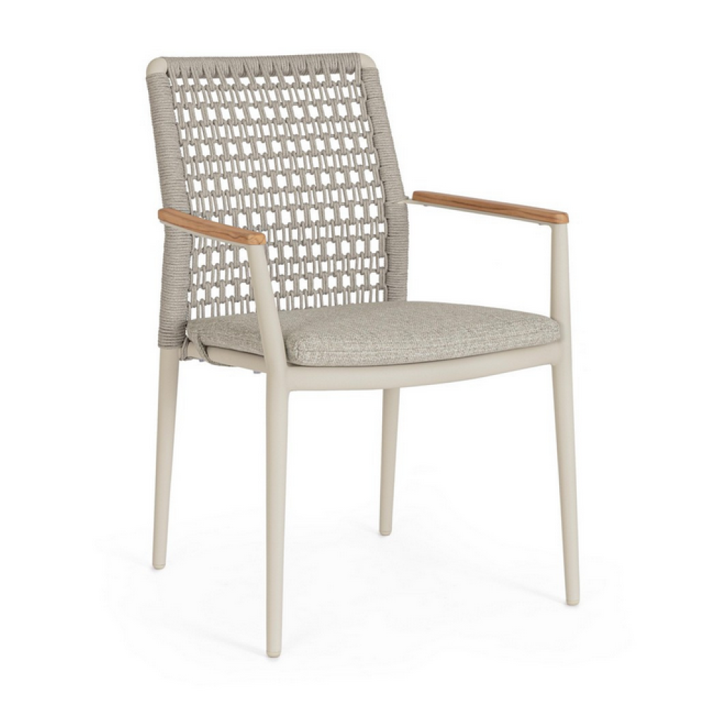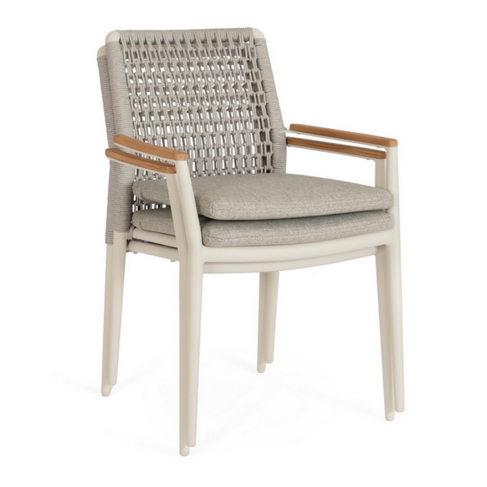 Стілець Bizzotto MADDOX PELICAN — преміальне поєднання алюмінію, тика та комфорту