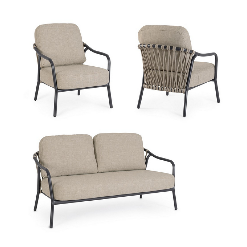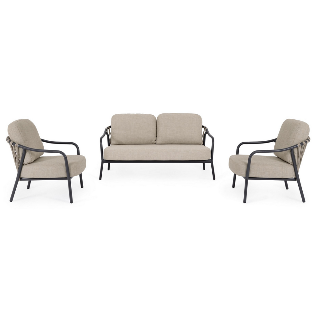 Комплект Bizzotto EDVIGE — це більше, ніж набір м'яких меблів. Це технологічна платформа для комфорту, побудована на триєдиній основі з алюмінію, плетеної гуми та поліпропілену.