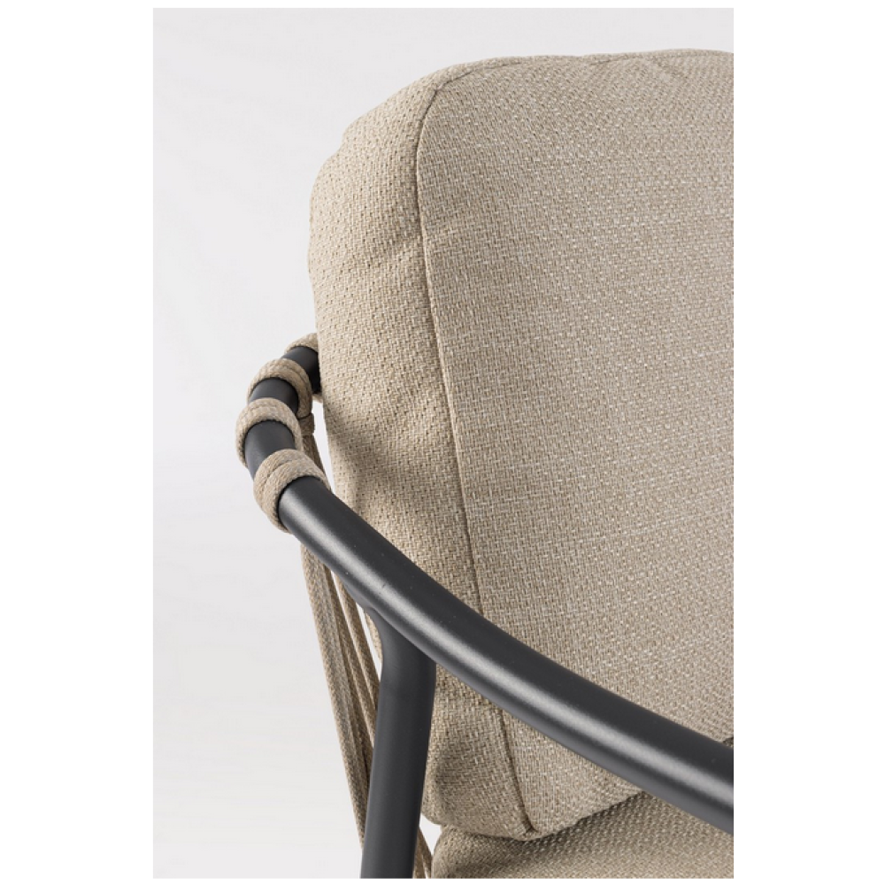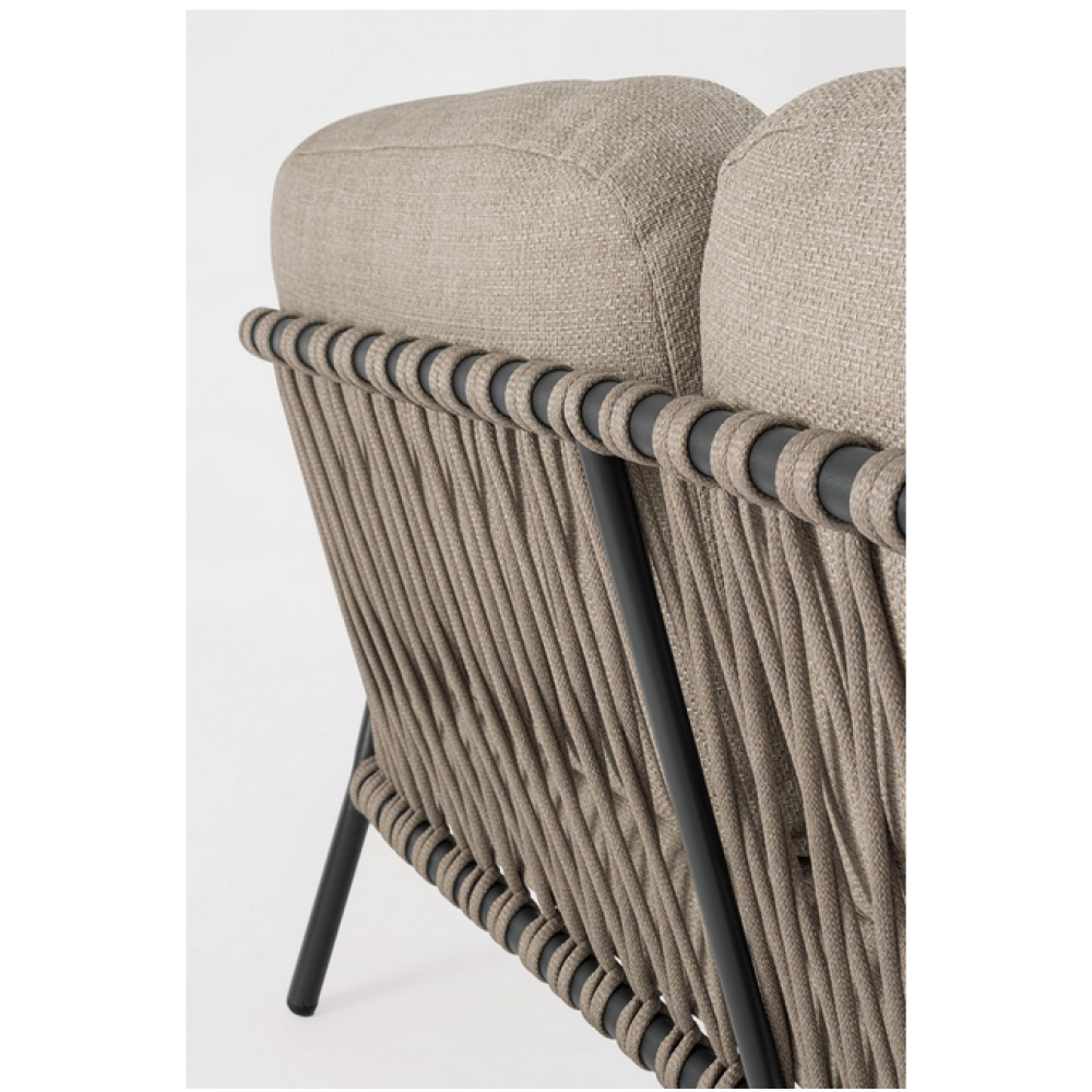 Конструкція з алюмінію із порошковим покриттям (поліестер). Спинка (з плетеною гумовою прокладкою). Знімні подушки з водовідштовхувальною гумовою прокладкою (100% поліпропілен). Штабльовані.