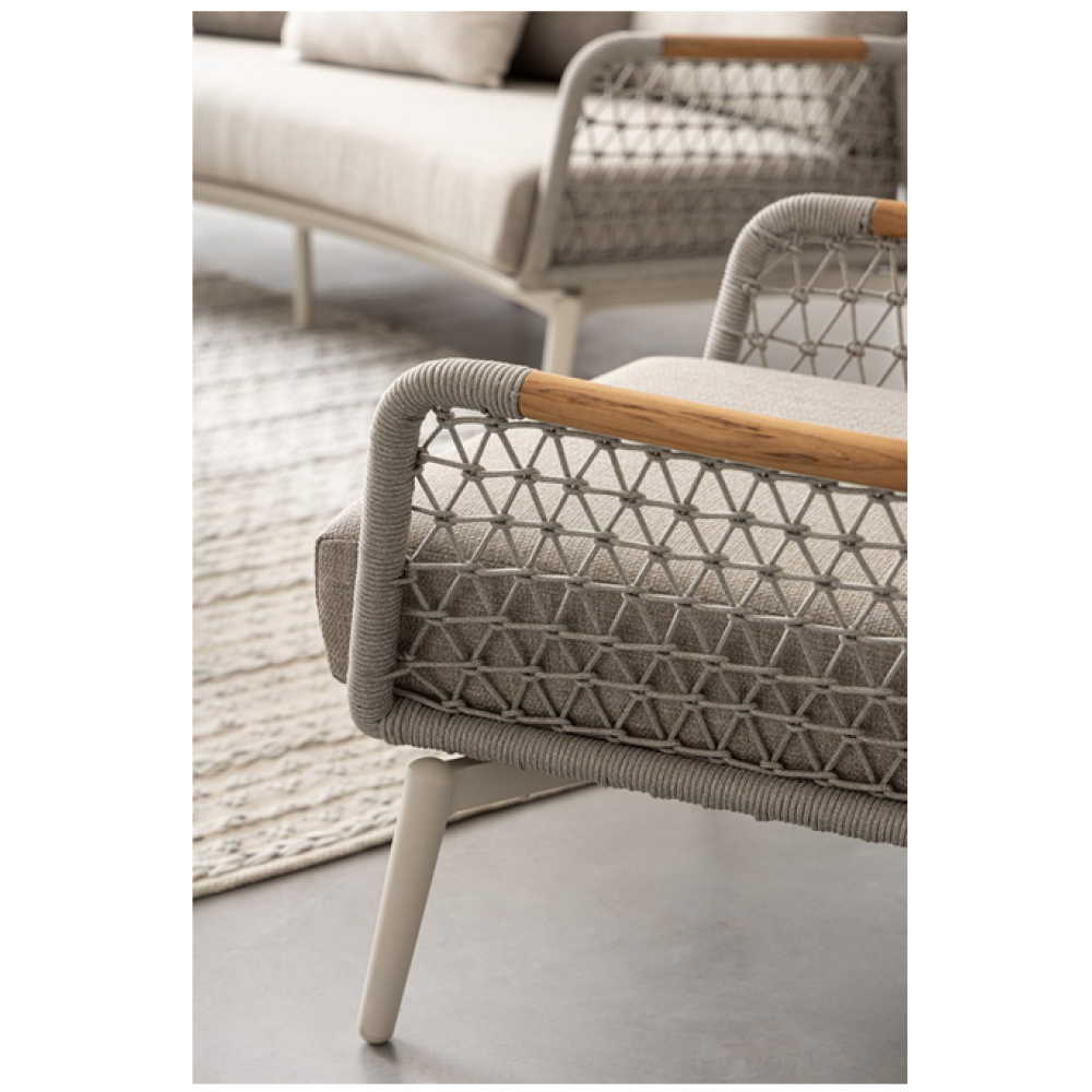 Нагадує традиційне морське або макраме, що додає кріслу ремінісцентний