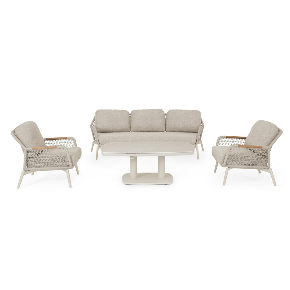 Диван Bizzotto EULERO — це не просто місце для сидіння. Це матеріалізоване рівняння комфорту, довговічності та краси, де алюмінієвий каркас, дерево тику, плетений олефін та технічні тканини