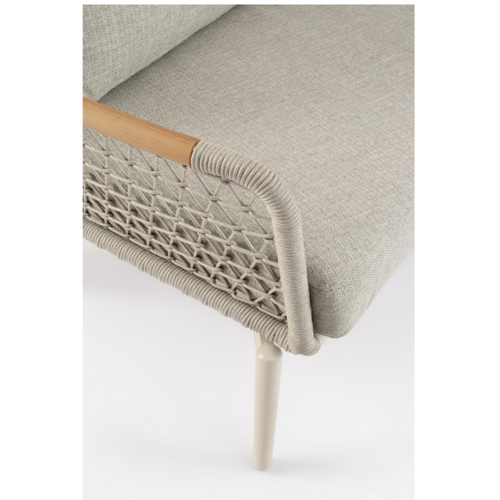 Конструкція з алюмінію із порошковим покриттям (поліестер). Підлокітники зі вставками з дерева тика. Спинка (з плетеною олефіновою ниткою), що відкидається у вільному положенні, та сидіння з текстилену 1х1. Знімні подушки з водовідштовхувальною олефіновою тканиною (100% поліпропілен).