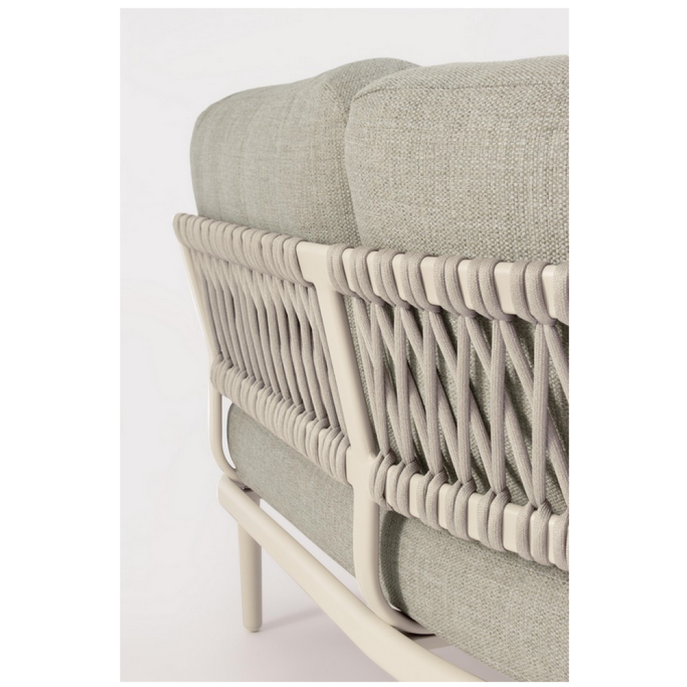 Конструкція з алюмінію із порошковим покриттям (поліестер). Спинки із плетеної олефінової тканини. Знімні подушки з водовідштовхувальної олефінової тканини (100% поліпропілен). Гвинти із нержавіючої сталі. Ніжки вимагають складання.
