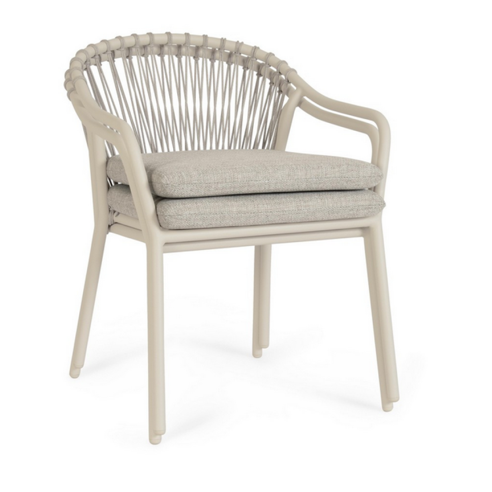 Фундаментом та головним візуальним контуром стільця Bizzotto EDVIGE є його каркас, виготовлений з алюмінію та вкритий сучасним порошковим поліестерним покриттям.