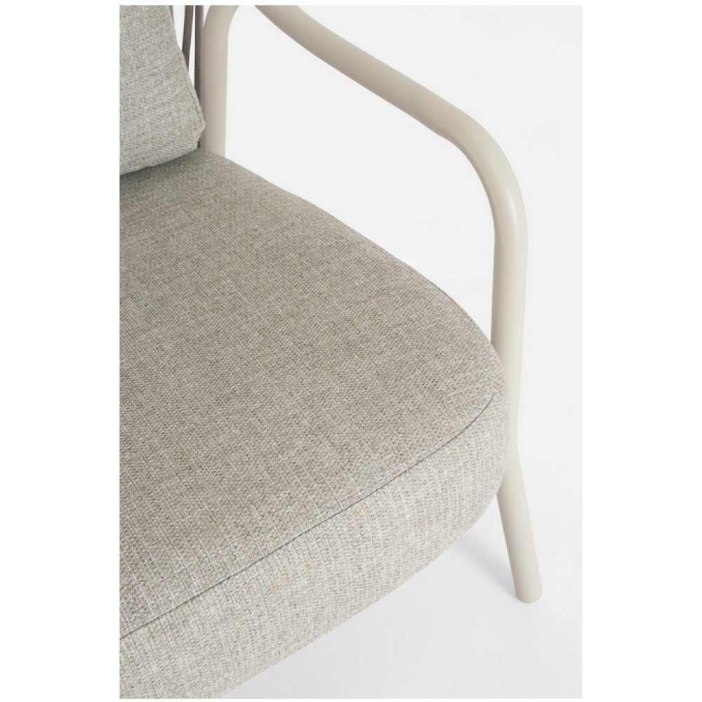 Конструкція з алюмінію із порошковим покриттям (поліестер). Спинка (з плетеною гумовою прокладкою). Знімні подушки з водовідштовхувальною гумовою прокладкою (100% поліпропілен). Штабльовані.