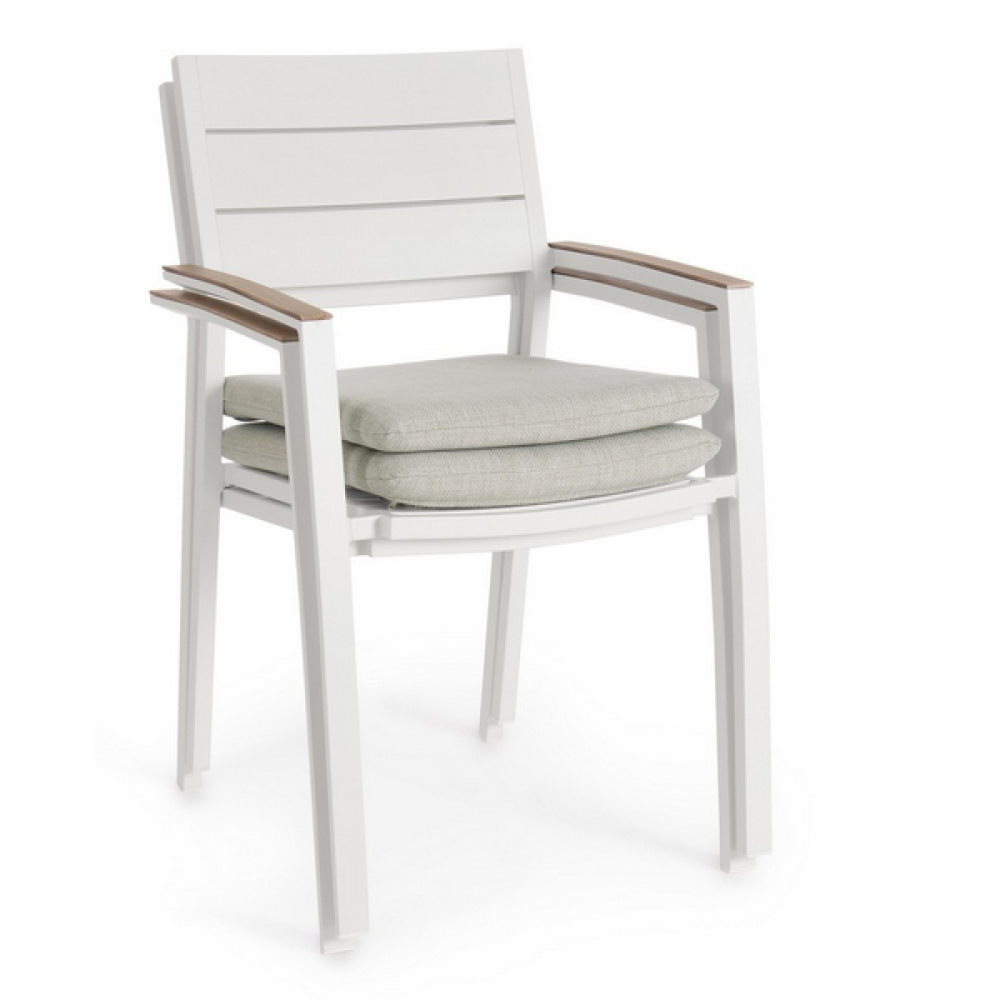 легкість, витривалість, зручність і естетика. Завдяки алюмінієвому каркасу та м’якому сидінню з водовідштовхувальної тканини, цей стілець підходить як для інтер’єрів, так і для відкритих терас, поєднуючи елегантність і практичність.