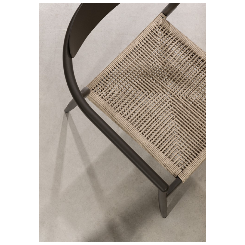 Фундаментом, що визначає весь характер стільця Bizzotto LINARES, є його каркас, повністю виготовлений з легкого та надміцного алюмінію. Алюміній тут обраний не випадково: це матеріал, що символізує сучасність, технологічність та прагматичну красу. Він дозволяє створювати витончені, але структурно стійкі форми з мінімальною масою. Каркас LINARES, ймовірно, складається з вигнутих трубчастих елементів, що формують плавний перехід від задніх ніжок до спинки та від передніх ніжок до підлокітників, створюючи візуальну єдність та цілісність.