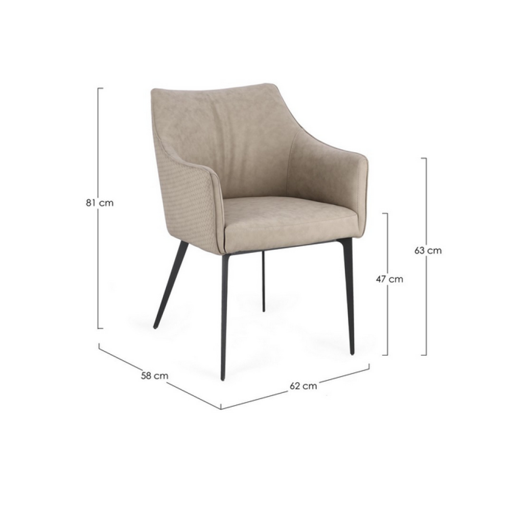 Конструкція та ніжки з вуглецевої сталі з епоксидним порошковим покриттям. Сидіння з фанери, обтягнутої пінополіуретаном щільністю 35 кг/м³. Оббивка із високоякісної штучної шкіри (ПУ). Ніжки вимагають складання.