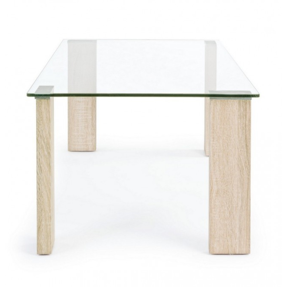 Верх із загартованого скла товщиною 12 мм. НІЖКИ МДФ, ОБКРИТИ МЕЛАМІНОВИМ ПАПЕРОМ ПІД ДЕРЕВО. НОГИ ДЛЯ ЗБОРУ.