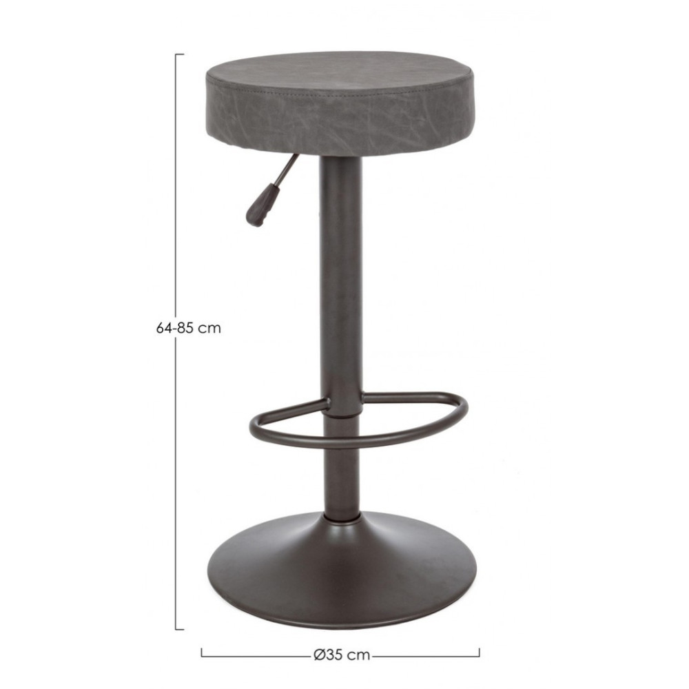 СІРА МАТОВА РАМА З ПОЛІЕСТРОВОГО ПОРОШКОВОГО ПОКРИВАННЯ СТАЛІ. Ø 38 СМ ОСНОВА. НАПОВНЕННЯ З НОВОГО ТА ПЕРЕРОБЛЕНОГО ПІНОПОЛІУРЕТАНУ: ЩІЛЬНІСТЬ 26 КГ/М3. ОБКЛАДКА З ІМІТАЦІЇ ШКІРИ. РЕГУЛЬОВАНА ВИСОТА. ДЛЯ МОНТАЖІ.