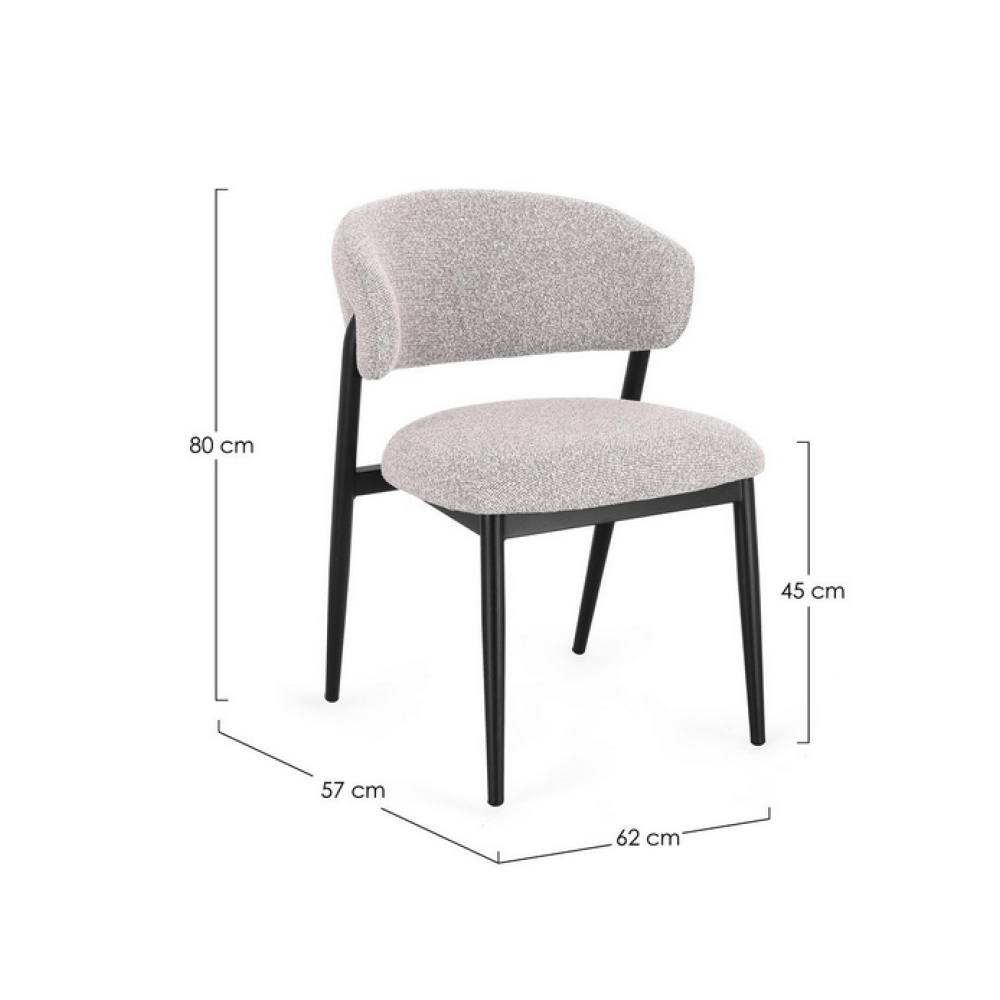М'які елементи стільця Bizzotto CASSANDRA пропонують вишуканий контраст до технічного каркаса. Сидіння та спинка виконані з високоякісного поліефірного покриття, що відтворює візуальну та тактильну текстуру традиційного букелю.