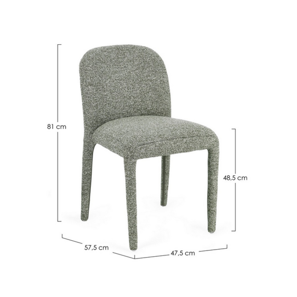 Сталевий каркас та ніжки, сидіння з фанери. Оббивка із 100% поліестеру з ефектом букле. Наповнювач із пінополіуретану. Щільність сидіння 28 кг/м³, спинки 24 кг/м³.