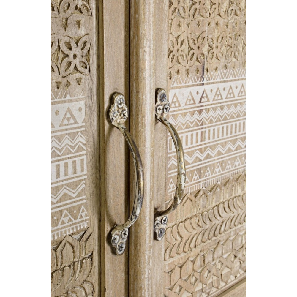 РАМА З МАНГОВОГО ДЕРЕВА З РІЗЬБЛЕНИМИ ДЕКОРАЦІЯМИ РУЧНОЇ РОБОТИ З МДФ. ОБРОБКА НІТРОЦЕЛЮЛОЗОЮ. ДВЕРНЕ ВІДДІЛЕННЯ З ПОЛИЦЯМИ. РУЧКИ ЛАТУННІ.