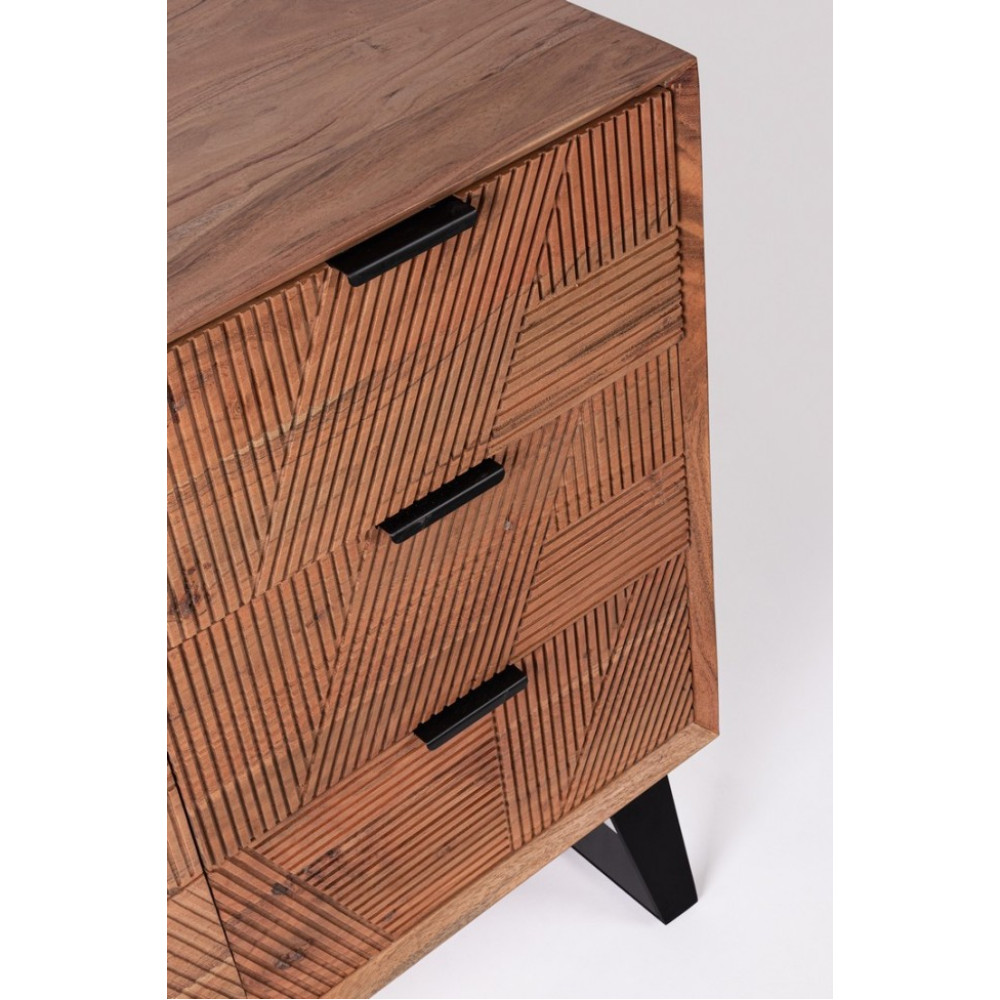 РАМА З ДЕРЕВА АКАЦІЇ, ЗАДНІ ПАНЕЛІ ТА ДНИЩА ЯЩИКІВ З ФАНЕРИ. ПЕРЕДНІ ДВЕРЯТА ТА ЯЩИКИ ІНКРУСТОВАНІ ТА РУЧНА РОБОТА. ЗАХИСНЕ АКРИЛОВЕ ПОКРІБЛЕННЯ. СТАЛЕВІ РУЧКИ ТА НІЖКИ. НОГИ ДЛЯ ЗБОРУ.