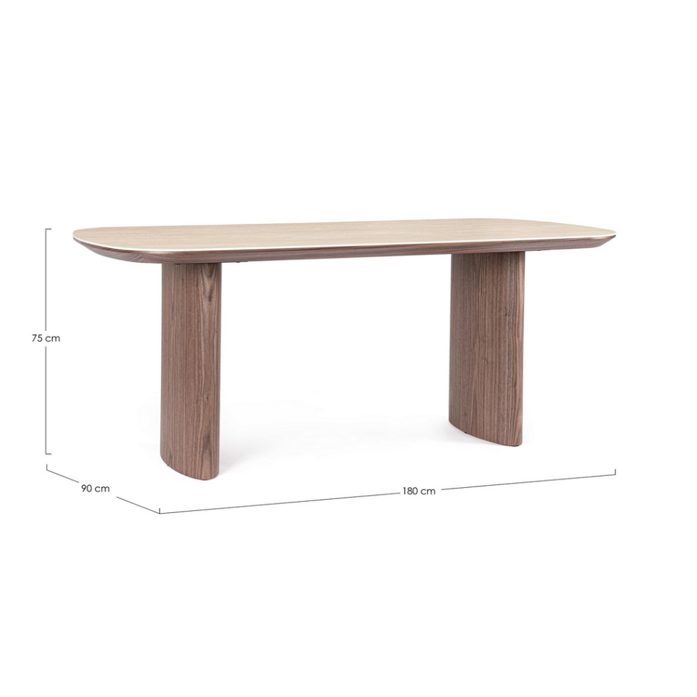 Конструкція та ніжки із МДФ із шпоном під горіх. Оздоблення поліуретановою фарбою. Стільниця зі спеченого каменю (натуральний камінь, оброблений за високих температур) з ефектом травертину. Ніжки вимагають складання.