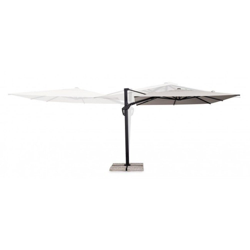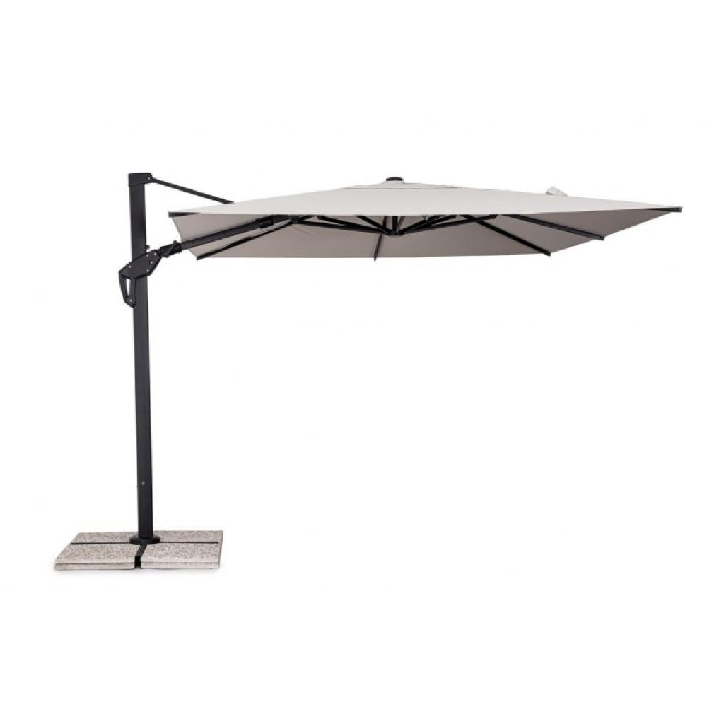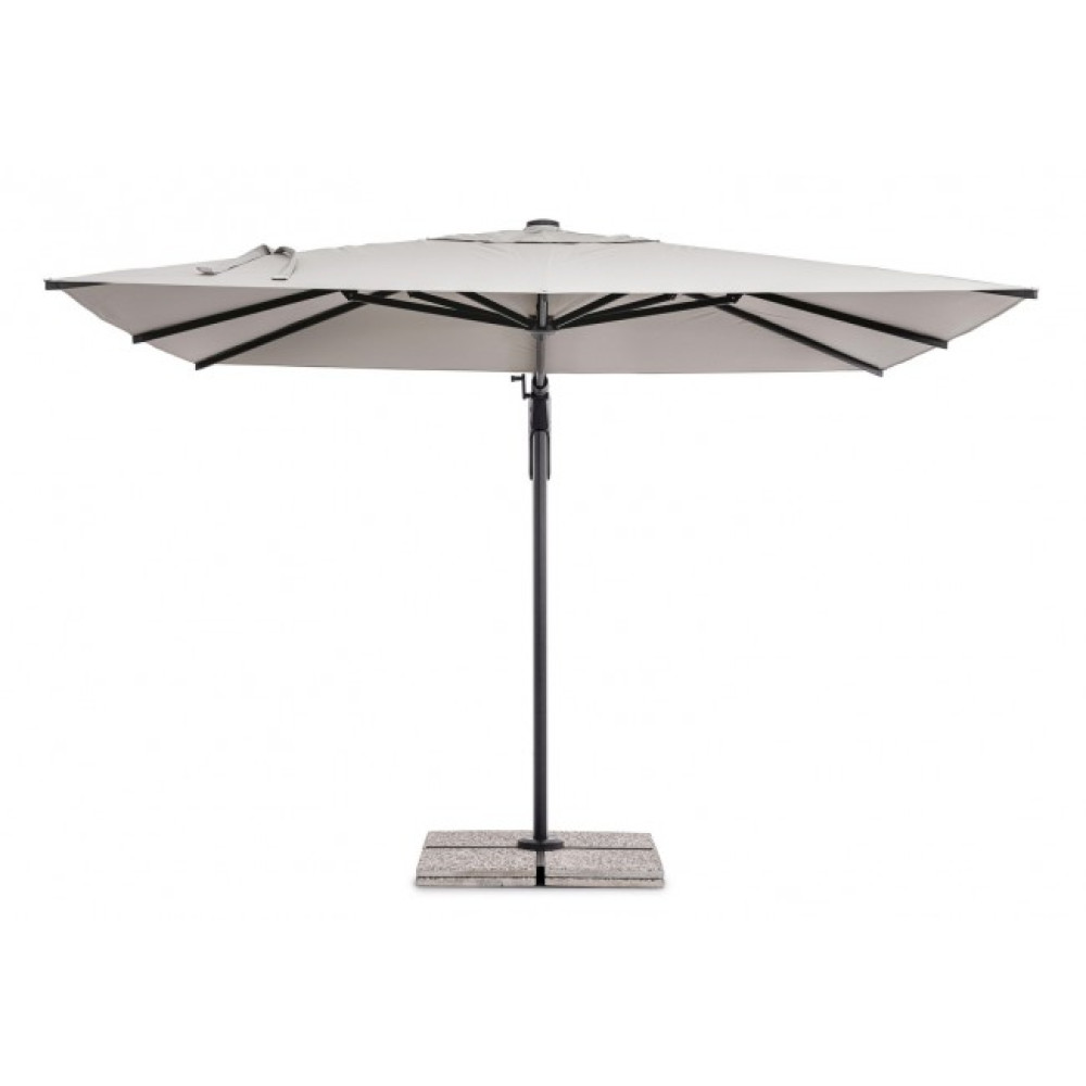 АЛЮМІНІЄВА РАМА ПОРОШКОВО ПОКРИВАНА (ПОЛІЕСТЕР). ГОЛОВНИЙ ПОЛЮС 102X65.5MM. 8 РЕБЕР 30X18.5MM. ПОЛІЕСТЕР НАТУРАЛЬНОГО КОЛЬОРУ 250GR/M2 PA ПОКРИТИЙ (ПОЛІАМІД) З ВЕНТИЛЯЦІЄЮ. 360° ОБРАТНИЙ ЖЕРДИНА ВРУЧНУ. ВЕРТИКАЛЬНИЙ НАХИЛ З 6 ПОЛОЖЕННЯМИ РУЧКИ. З СИСТЕМОЮ НАХИЛУ ПАРАСОЛІ ВЛІВО-ПРАВО. НІЧНА ПОКРИВКА ВКЛЮЧЕНА. СТАЛЕВА ХРЕСТОВА ОСНОВА. ЦЕМЕНТНА ОСНОВА НЕ ВХОДИТЬ.