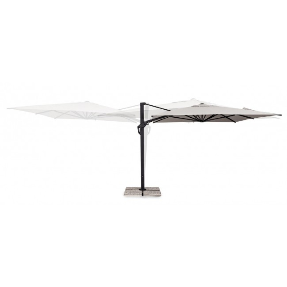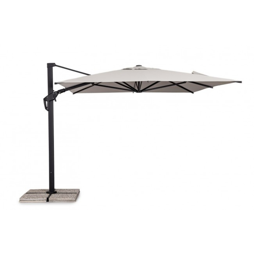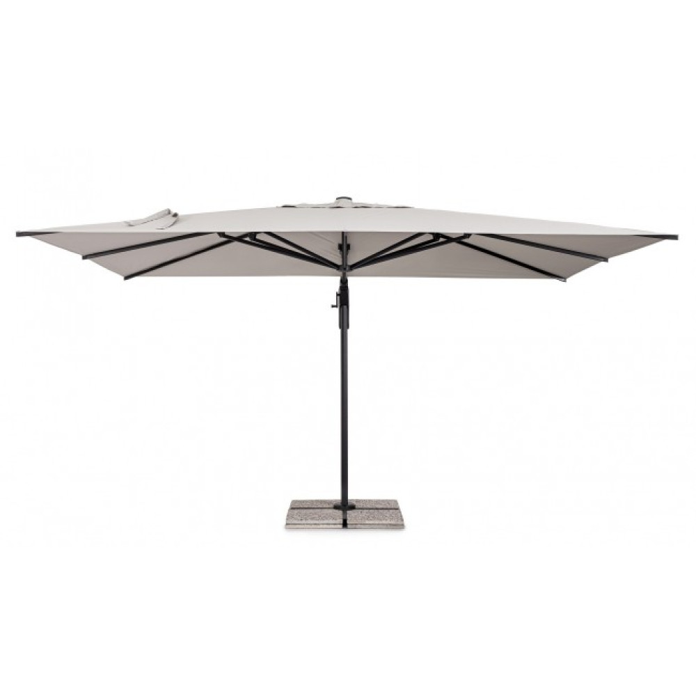 АЛЮМІНІЄВА РАМА ПОРОШКОВО ПОКРИВАНА (ПОЛІЕСТЕР). ГОЛОВНИЙ ПОЛЮС 102X65.5MM. 8 РЕБЕР 30X18.5MM. ПОЛІЕСТЕР НАТУРАЛЬНОГО КОЛЬОРУ 250GR/M2 PA ПОКРИТИЙ (ПОЛІАМІД) З ВЕНТИЛЯЦІЄЮ. 360° ОБРАТНИЙ ЖЕРДИНА ВРУЧНУ. ВЕРТИКАЛЬНИЙ НАХИЛ З 6 ПОЛОЖЕННЯМИ РУЧКИ. З СИСТЕМОЮ НАХИЛУ ПАРАСОЛІ ВЛІВО-ПРАВО. НІЧНА ПОКРИВКА ВКЛЮЧЕНА. СТАЛЕВА ХРЕСТОВА ОСНОВА. ЦЕМЕНТНА ОСНОВА НЕ ВХОДИТЬ.