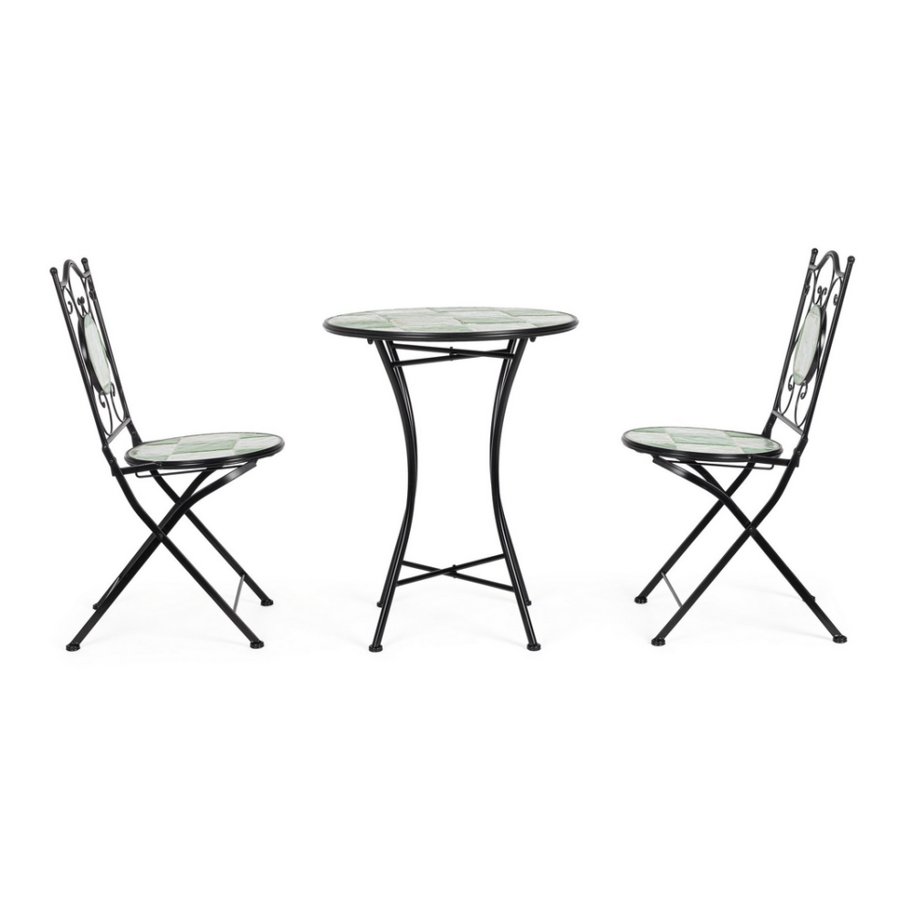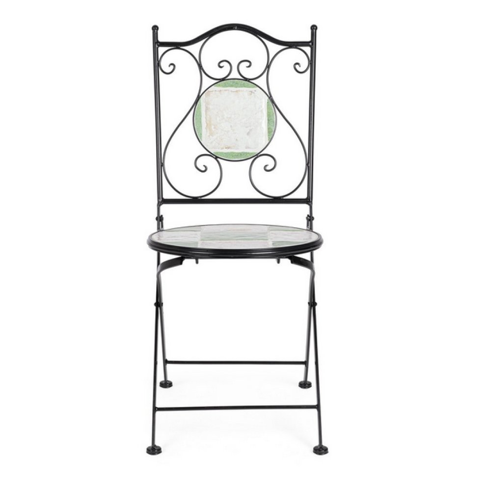 Сталева рама для використання на відкритому повітрі (електрофорізне покриття) та епоксидне порошкове фарбування. Керамічна обробка сидіння та спинки. Складна конструкція.