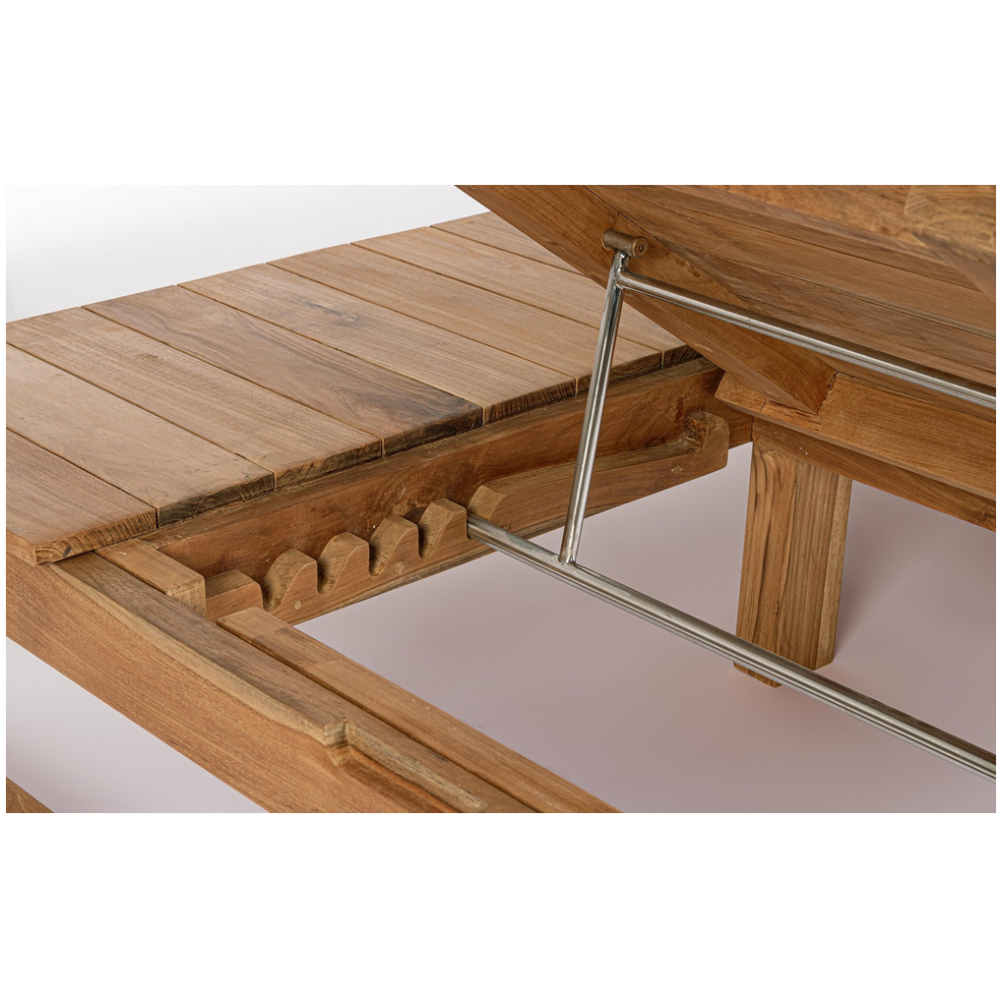 ТИКОВА ДЕРЕВИНА FSC 100%, НАТУРАЛЬНЕ ОБРОБЛЕННЯ. ВІДКЛАДНА СПИНКА (5 ПОЛОЖЕНЬ). МЕТАЛЕВІ ДЕТАЛІ ТА ГВИНТИ З НЕРЖАВІЮЧОЇ СТАЛІ №304. НІЖКИ ДЛЯ ЗБИРАННЯ. РЕКОМЕНДУЄТЬСЯ НЕ ПІДВОДЖАТИ ВИРІБ В ПІДДІЛ ПРЯМИХ СОНЯЧНИХ ПРОМ'ЯНЬ ТА ПОГОДНИХ НЕГОД. ЦЕЙ ВИРІБ ХАРАКТЕРИЗУЄТЬСЯ НАЯВНІСТЮ ДЕРЕВ'ЯНИХ БЛОКІВ ТАКОГО Ж ВИРОБУ. БУДЬ-ЯКІ ВМ'ЯТИНИ, ТРІЩИНИ АБО НЕДОСТУПНОСТІ, ЯКІ ТАКОЖ МОЖУТЬ УТВЕРДЖУВАТИСЯ З ЧАСОМ, Є ХАРАКТЕРИСТИКАМИ ЦЬОГО МАТЕРІАЛУ ТА РОБЛЯТЬ КОЖЕН ВИРІБ УНІКАЛЬНИМ ТА ОРИГІНАЛЬНИМ. ТИК БАГАТИЙ НА ОЛІЇ. З ЧАСОМ ЦІ ОЛІЇ, ШЛЯХОМ ПРИРОДНОГО ПРОЦЕСУ, ПІДНІМАЮТЬСЯ НА ПОВЕРХНЮ І МОЖУТЬ ЗАБАРВИТИ БУДЬ-ЯКІ ПОДУШКИ, ЩО КОНТАКТУЮТЬ З ДЕРЕВИНОЮ.