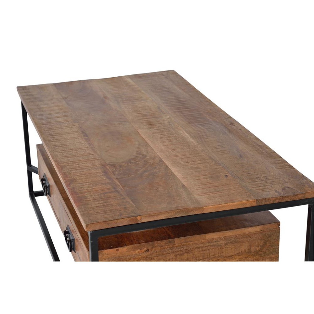 КАВОВИЙ СТІЛ З 2 ЯЩИКАМИ З ДЕРЕВА МАНГО ТА МЕТАЛУ. - Розміри спереду: 10х40 см - Внутрішні розміри ящика: 7x36x34 см - Висота між полицею та верхом: 12 см ДЕРЕВО МАНГО ТА МЕТАЛ