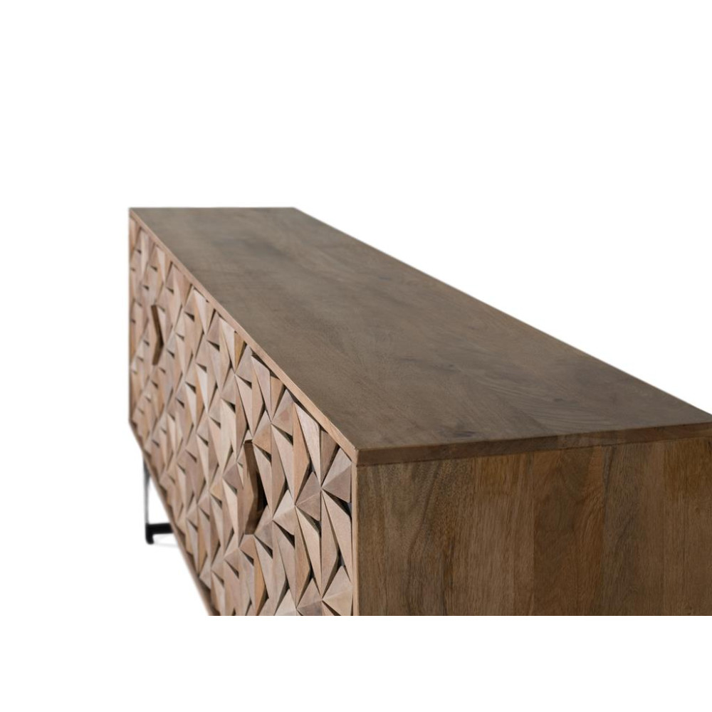 Тумба з дерева манго. Ця чотиридверна тумба поєднує мангове дерево з металом, пропонуючи достатньо місця для зберігання посуду та інших речей. Металеві ніжки додають стійкості та сучасності, ідеально підходять для будь-якої обідньої та розважальної зони. Мангове дерево