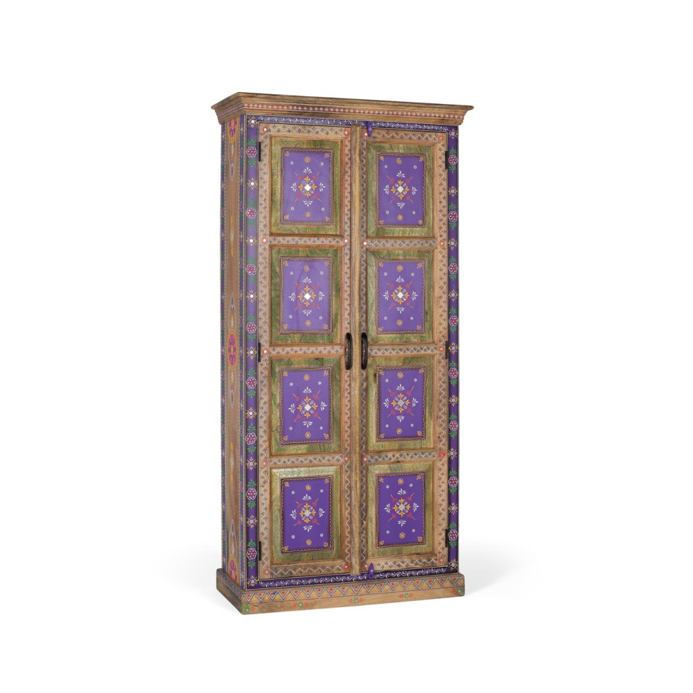 Ця приголомшлива шафа втілює досконалість ремісничого мистецтва завдяки дизайну з мангового дерева, розписаного вручну. Кожен аспект цього виробу відображає прискіпливу увагу до деталей і відданість якості.