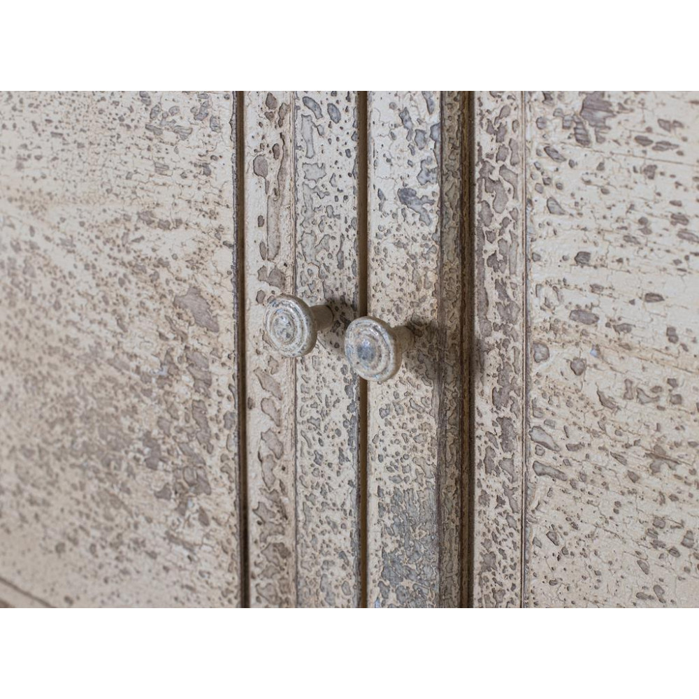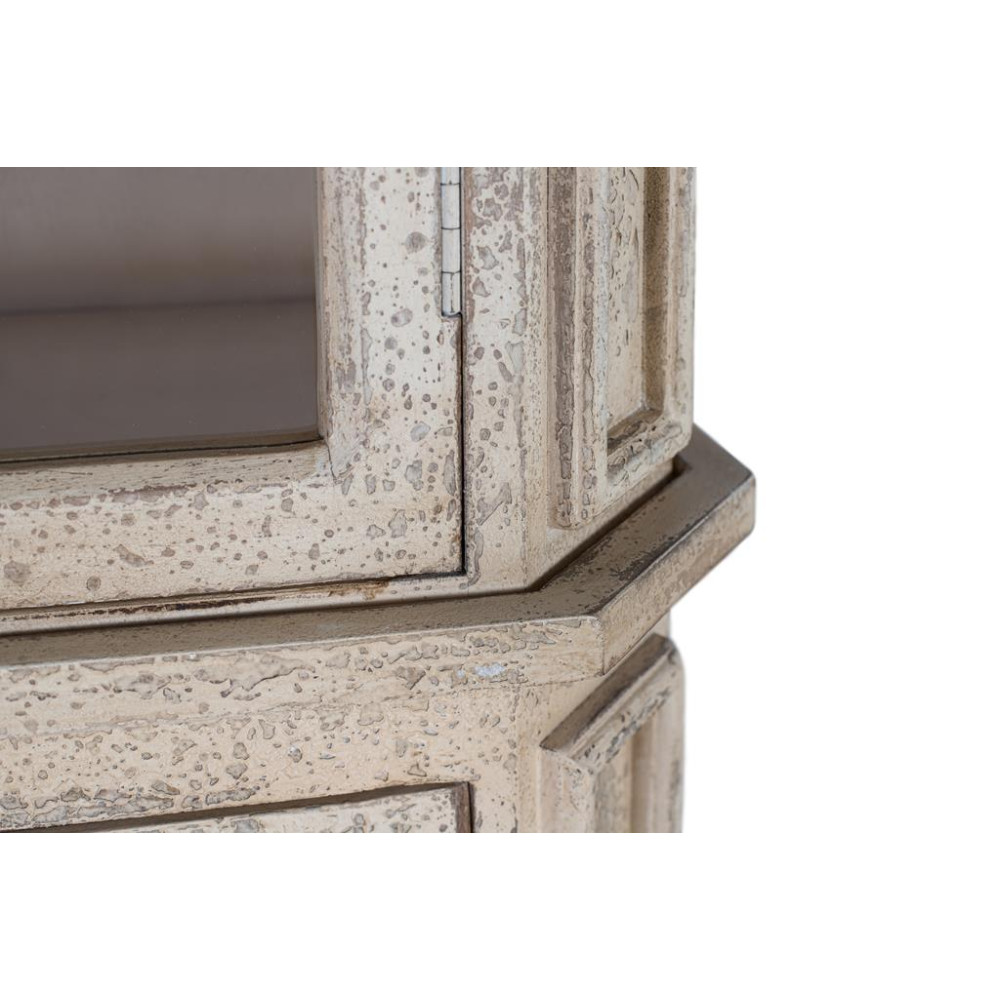 4-дверна шафа-вітрина, виготовлена з мангового дерева з потертою обробкою, є справжнім витвором мистецтва, який випромінює сільський шарм і характер.