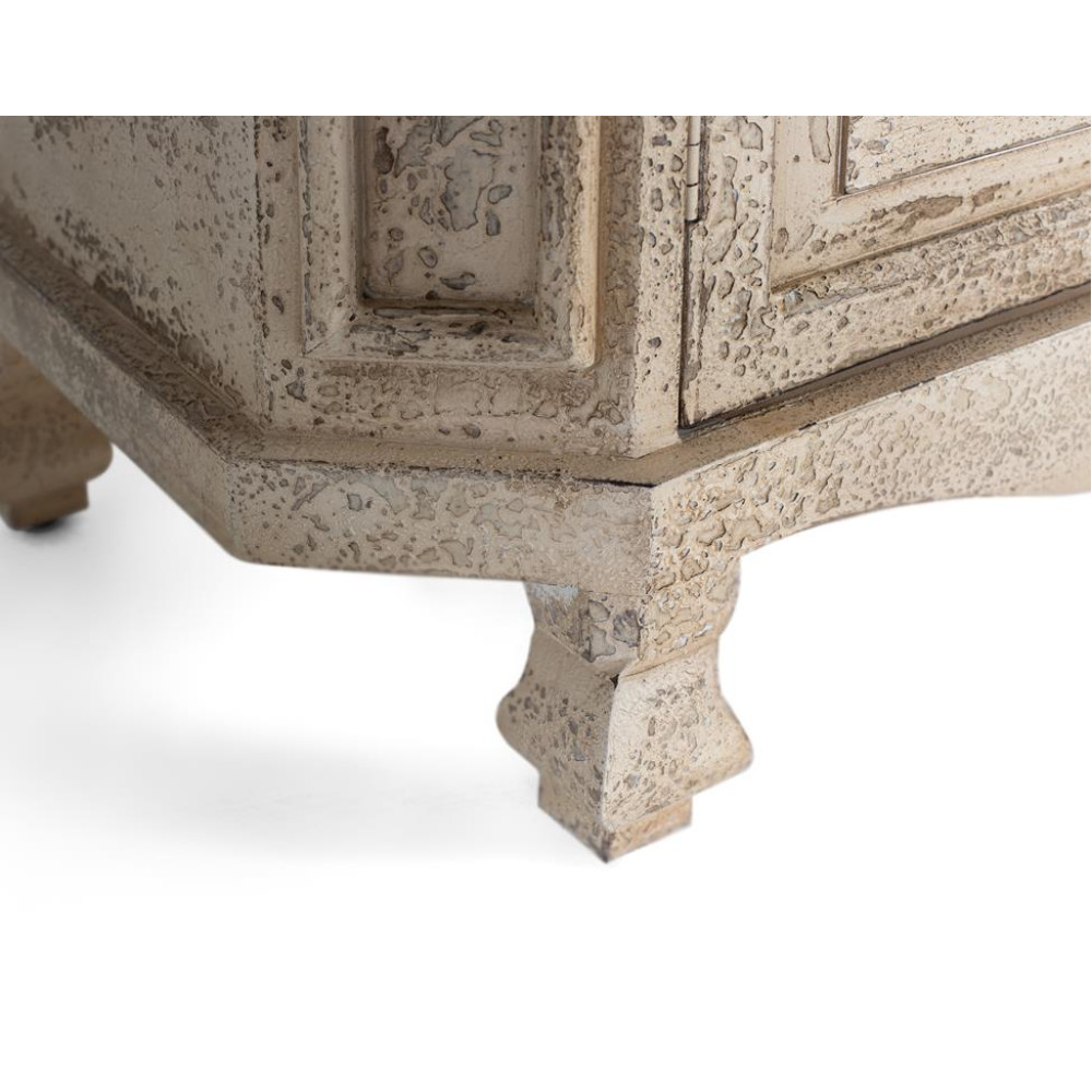 Дерево манго — ідеальний матеріал для цієї вітрини. Його виразна зернистість і теплі відтінки ще більше підкреслюються потертою обробкою, що надає йому антикварного вигляду з історією.