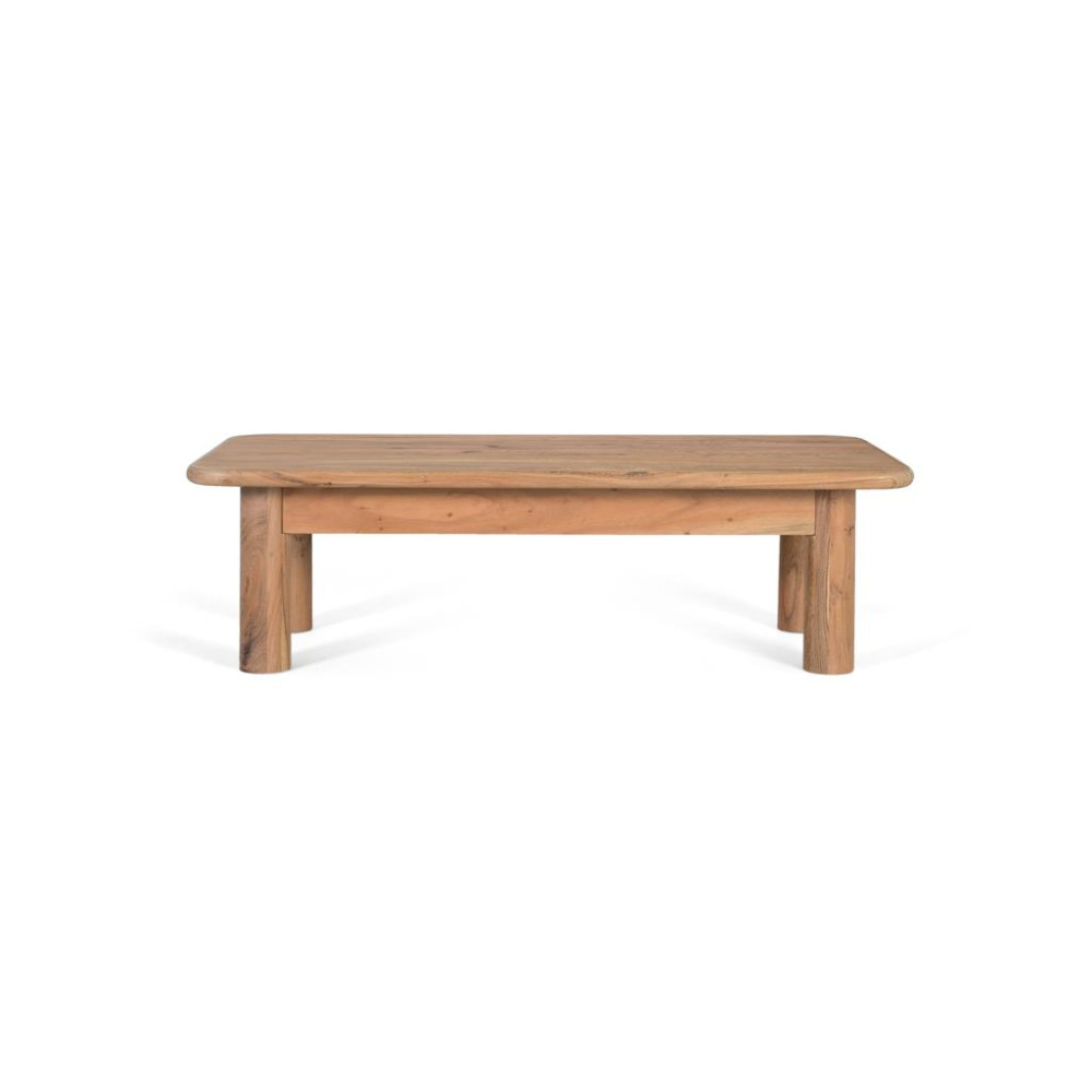 Цей прямокутний журнальний столик виготовлено з натурального дерева манго, що надає йому теплого та автентичного вигляду, з текстурою деревини та відтінками. Його товстий верх забезпечує солідність і присутність, що підкреслюється елегантним напівкруглим молдингом по краях, який пом’якшує його дизайн і додає нотку вишуканості.