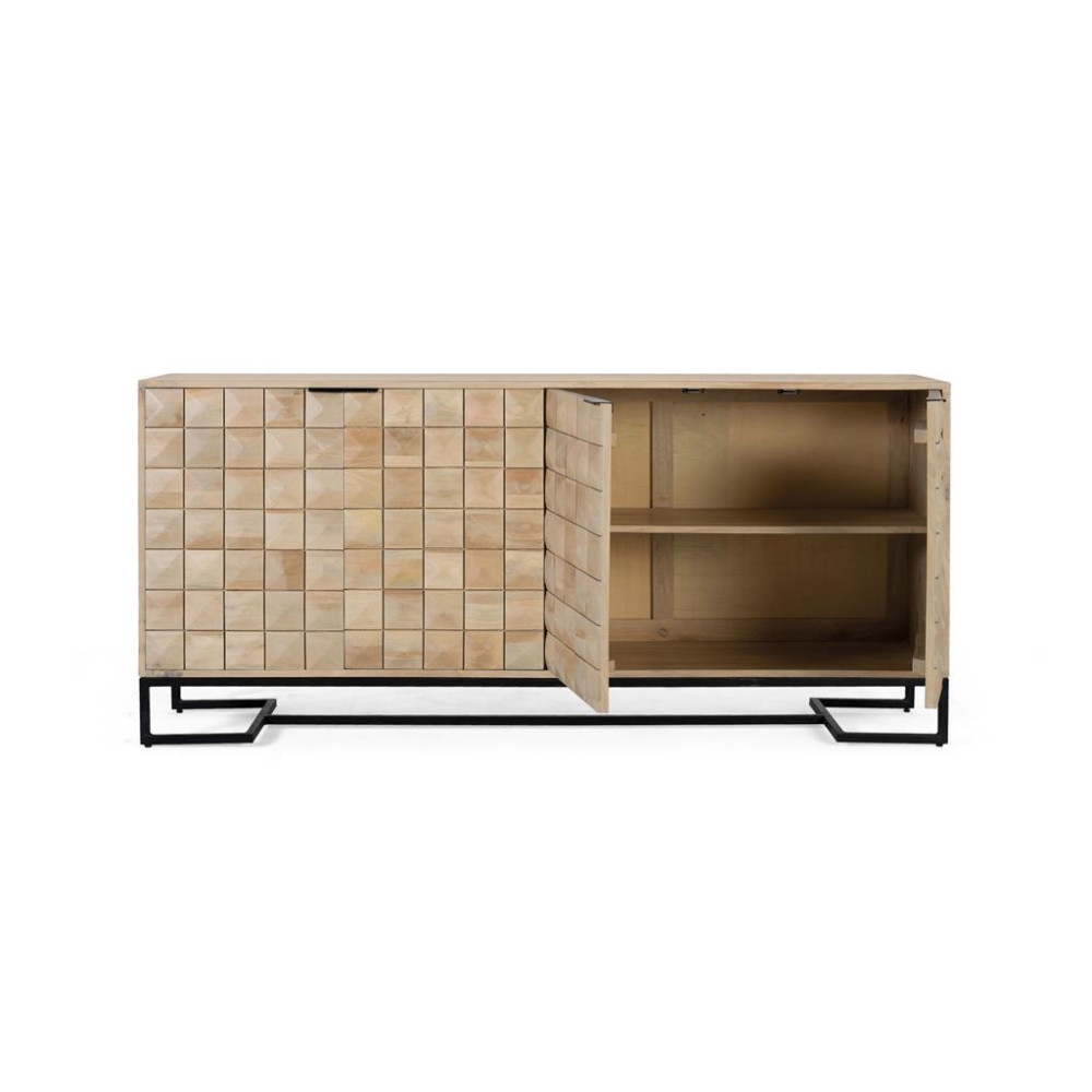 Ця тумба вирізняється своїм елегантним і сучасним дизайном. Він виготовлений із деревини манго, а зовнішня структура пофарбована в теплі горіхові тони, що підкреслює зернистість.