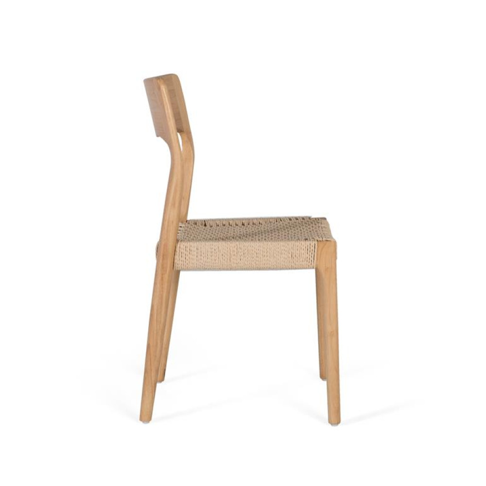 Цей набір з двох стільців поєднує в собі тепло каучукового дерева з елегантним і функціональним дизайном. Дерево пофарбовано в натуральний тон. Кожне крісло має середньо-високу спинку. Його обтічна форма та м’які лінії підкреслюють його витончену естетику. Сидіння виготовлено з мотузки кольору екрю. Це плетіння ручної роботи не тільки додає привабливі візуальні деталі, але й забезпечує гнучкість і адаптивність під час сидіння, забезпечуючи комфорт і тривалий досвід. ВИСОТА НІЖКИ - 38 СМ